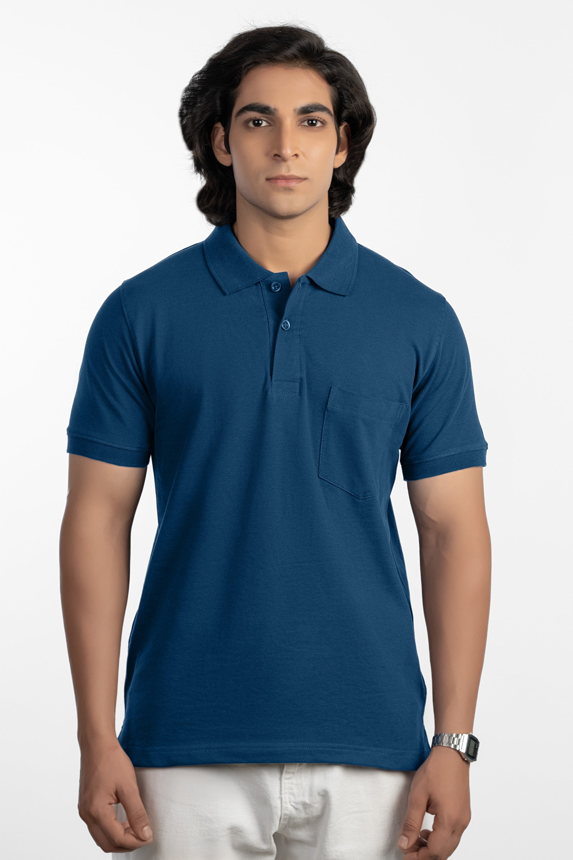 ESSENTIAL POCKET POLO - DENIM BLUE