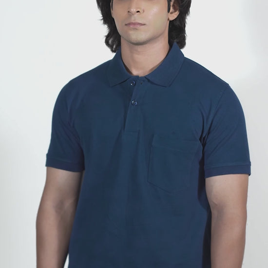 Essential Pocket Polo in Denim Blue provides both style and comfort with its 100% pure cotton material. Keep your essentials close by with the convenient pocket. Perfect for any occasion, this polo is a must-have for any wardrobe.